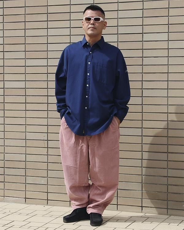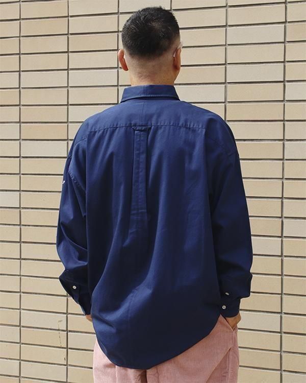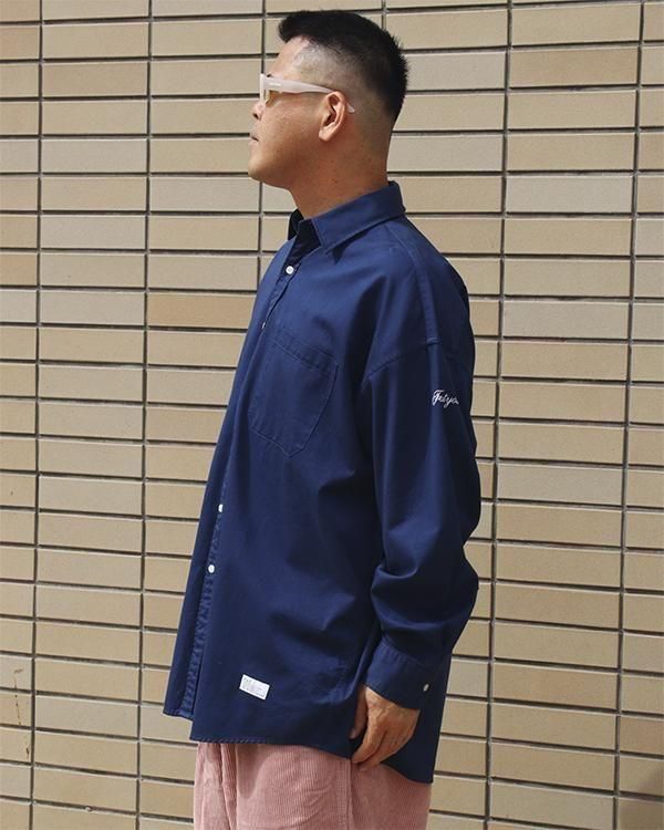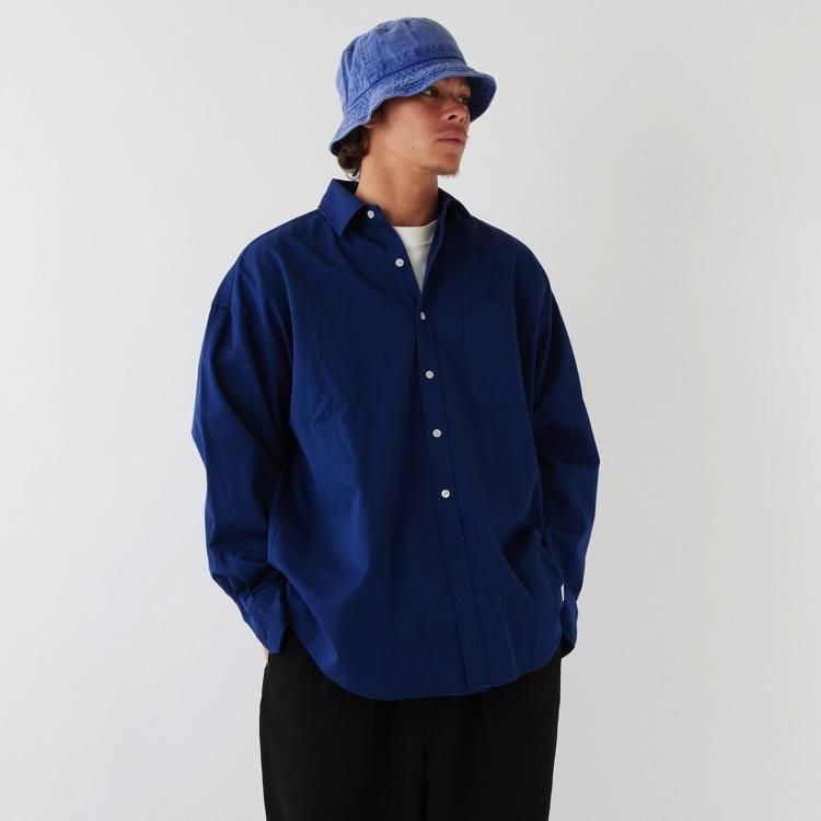 程よい肉感のコットンチノを使用し、洗い加工によりアタリ感を出した、通常よりも身幅・肩幅にゆとりをもたせたBIGシルエットシャツ。