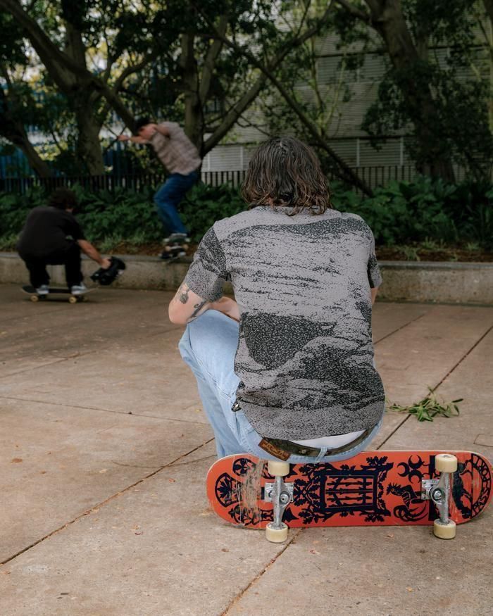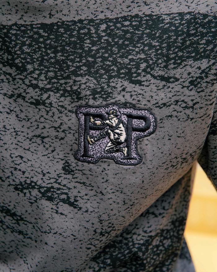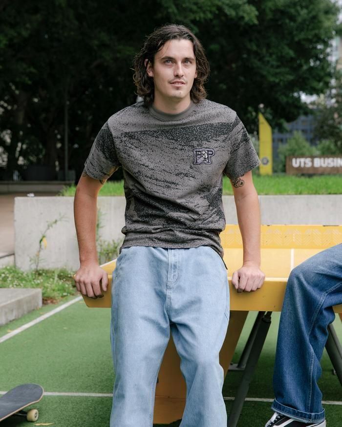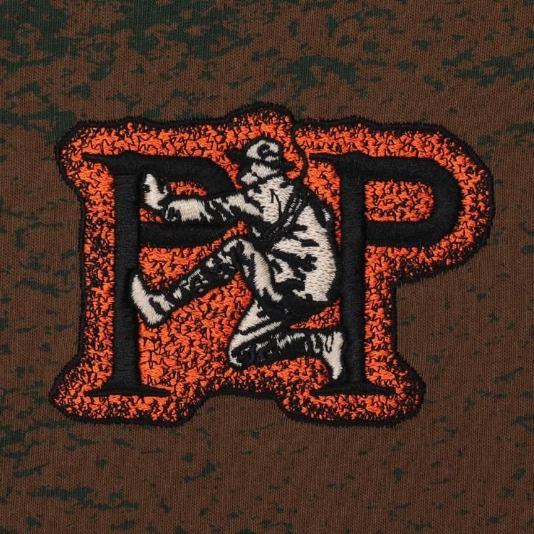 全面に水性スクリーンプリントとフロントにグラフィック刺繍。