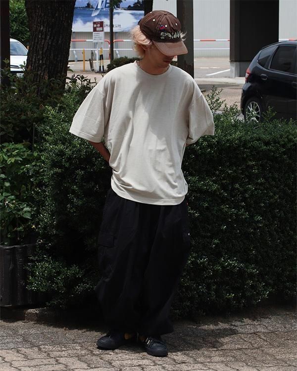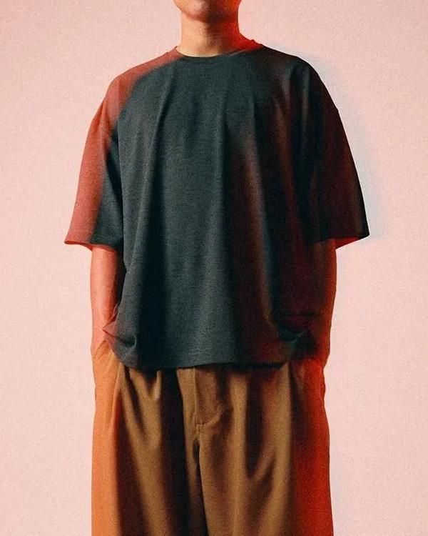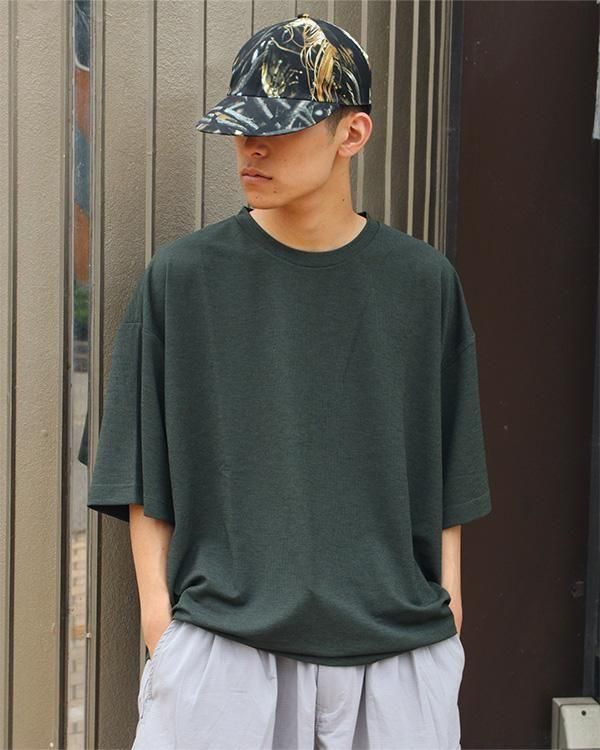 軽やかさと清涼感ある肌触りで麻ような質感が特徴のジャージ素材のTシャツ。