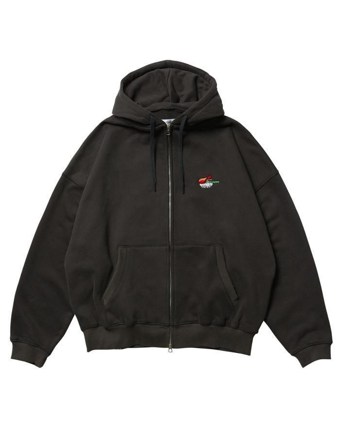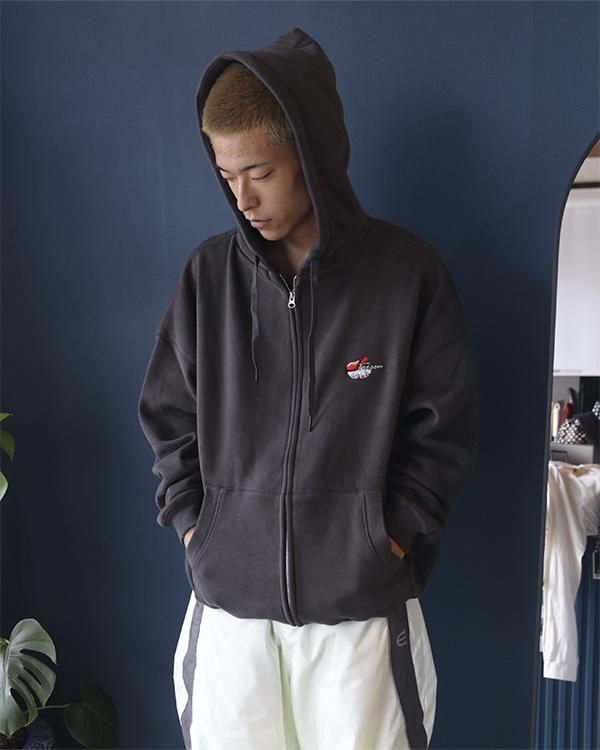 11.2ozの温かな裏起毛生地を使ったジップアップスウェットフーディー。
