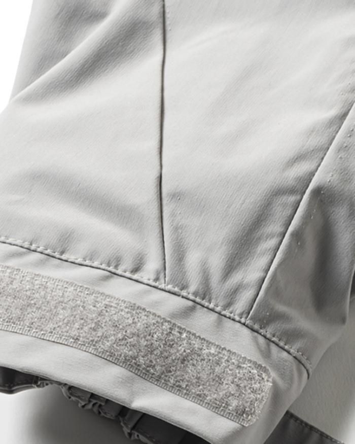 切り替え部分にファスナーを配置したコンシールドポケットを搭載し、前身頃に4箇所、背面の切り替えにも大きく1箇所ポケットがある設計。