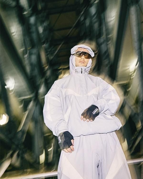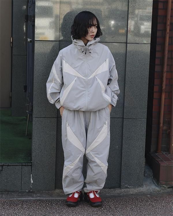 同素材のTRIANGLE BALLOON PANTSとのセットアップスタイルも可能。