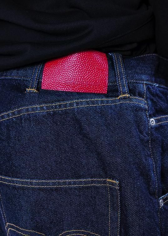 腰の本革パッチには、ブランドカルチャーを象徴する“バスケットボール”をイメージしました。