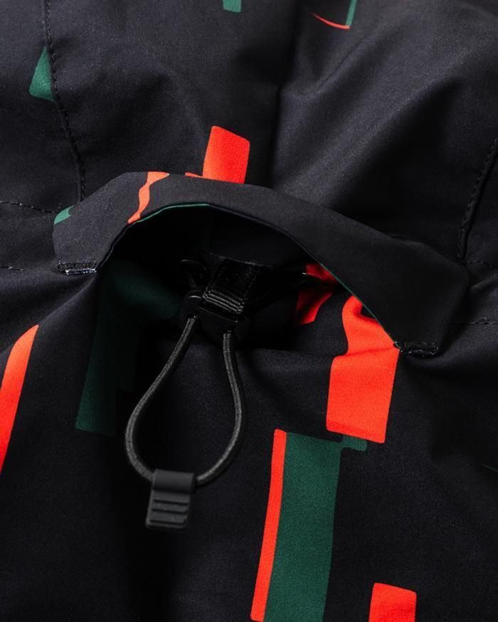 フードには顔まわりだけでなくの後頭部付近にもドローコードを巡らせ細かなフィット感の調整が可能。