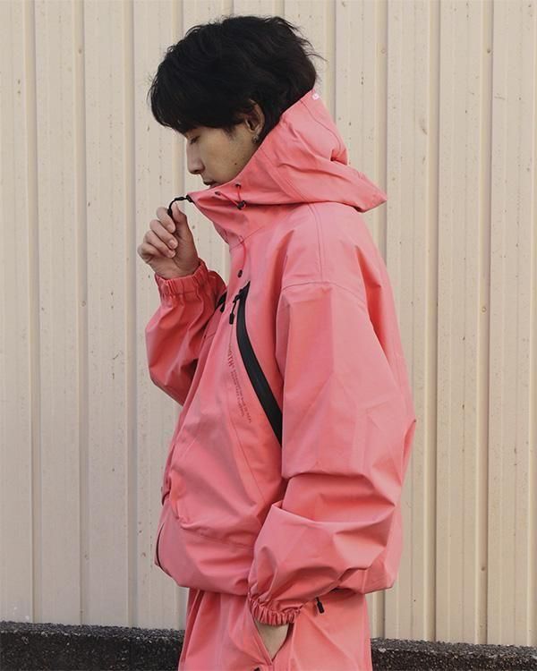 生地は耐水圧20,000mm、透湿性10,000g/m2 -24hの機能を備え、各所のファスナーも止水性のあるAquaGuardを採用。