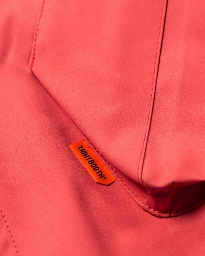 フードのフロント部分にロゴ刺繍、左のデザインポケットにロゴプリント、右のデザインポケットにオレンジのピスネーム付きで、コードロックや引き手パーツもロゴ入り。