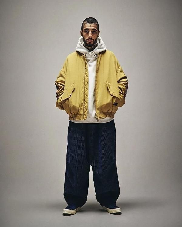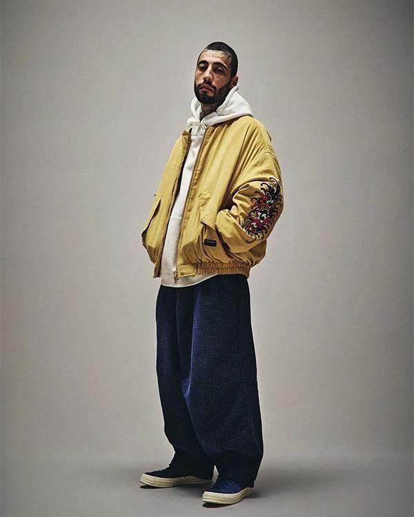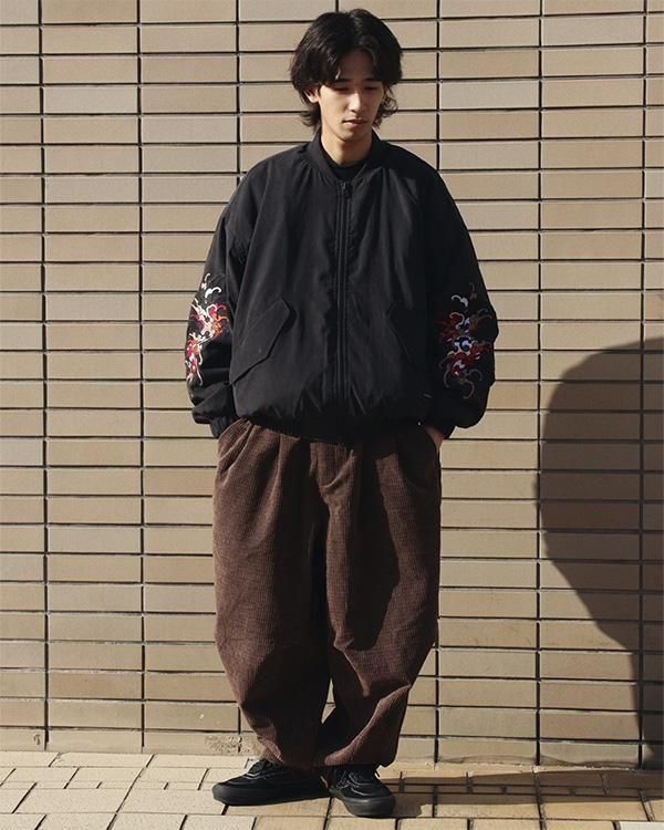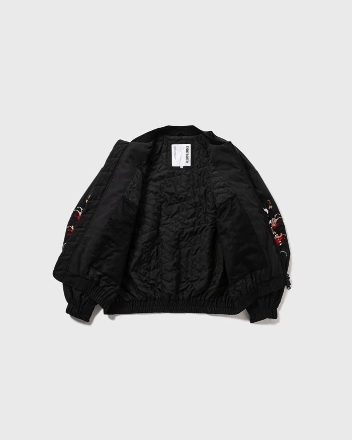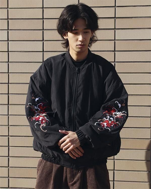 和彫りの「水」を両袖に刺繍で落とし込んだMA-1ジャケット。