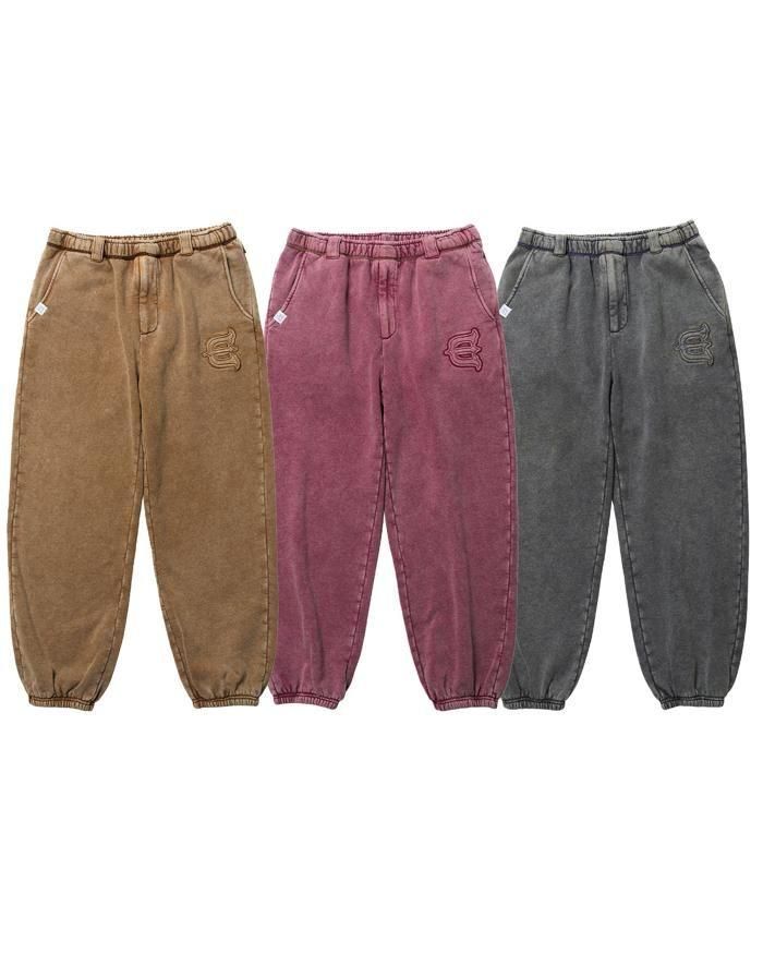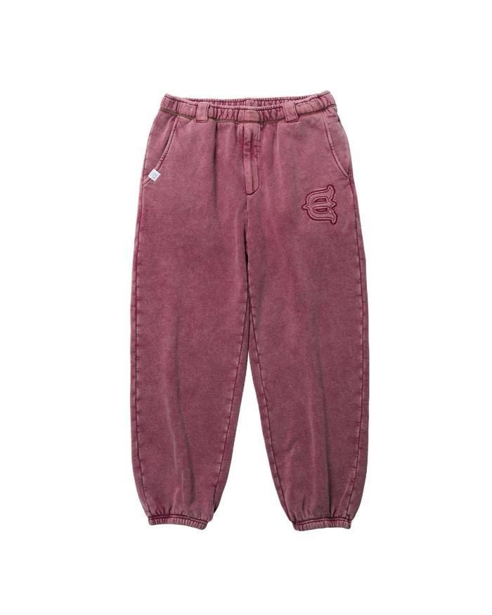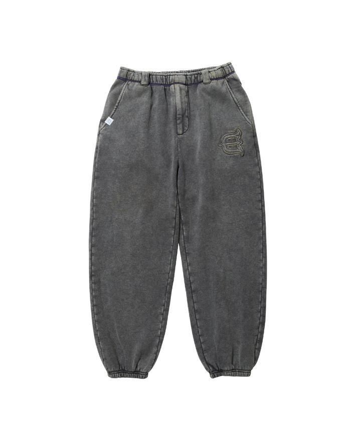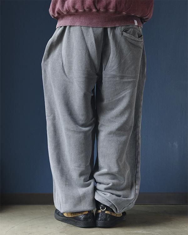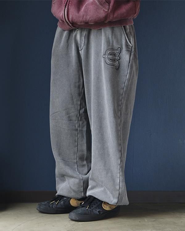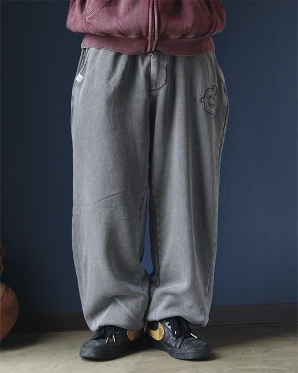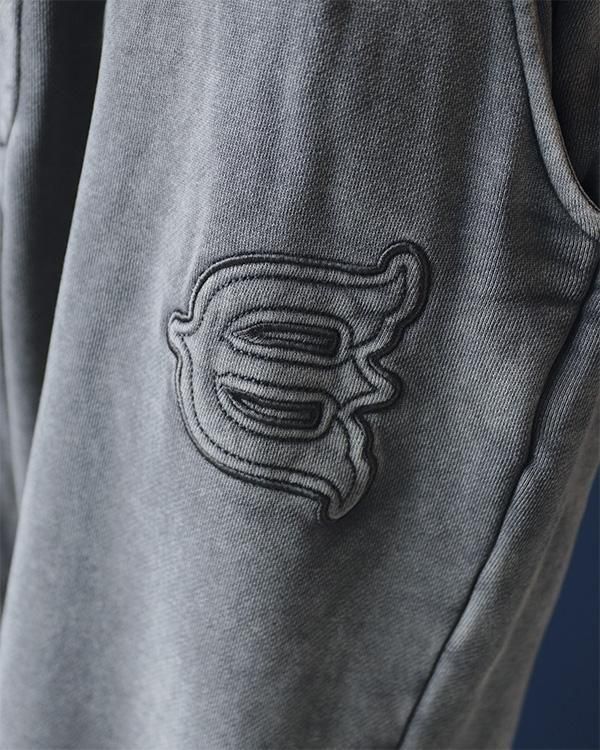 バックポケット上にはシルバーの“ゑ”刺繍入り。裾は平ゴム入りのシャーリング仕様。ステッチの糸色とボディーの色のコントラストもポイントです。同じ素材のフーディーとのセットアップスタイルがオススメ。