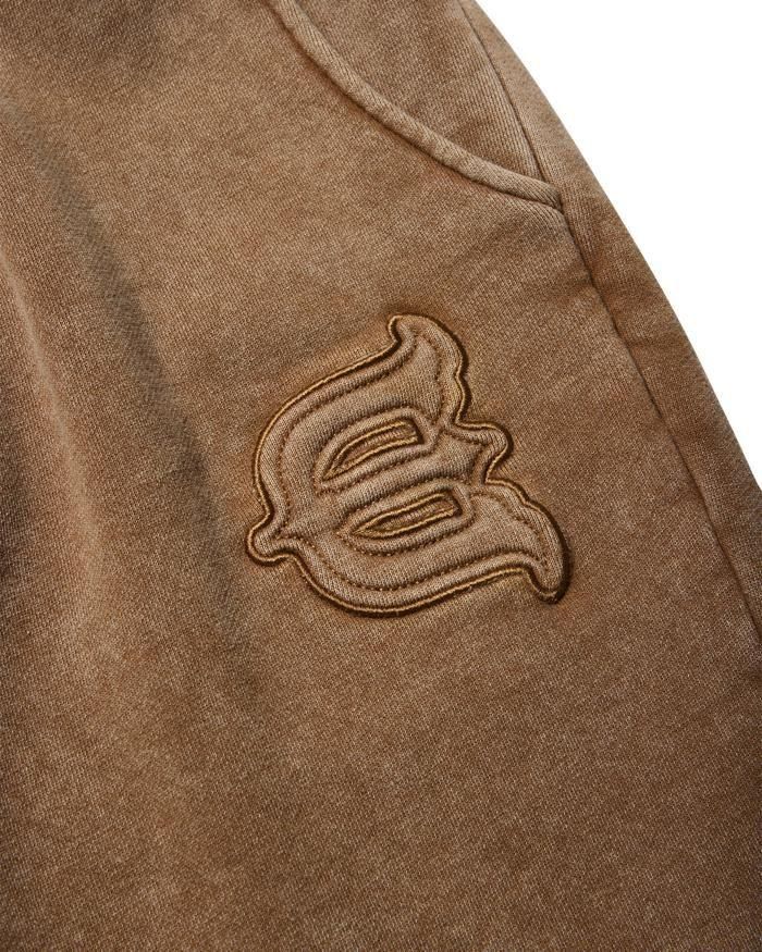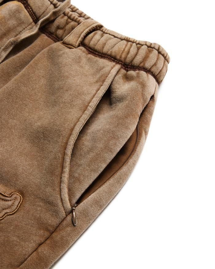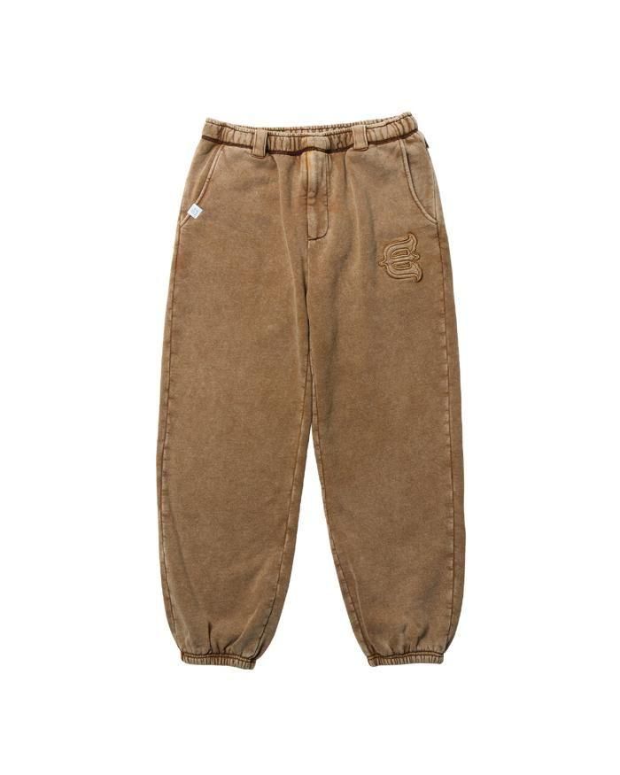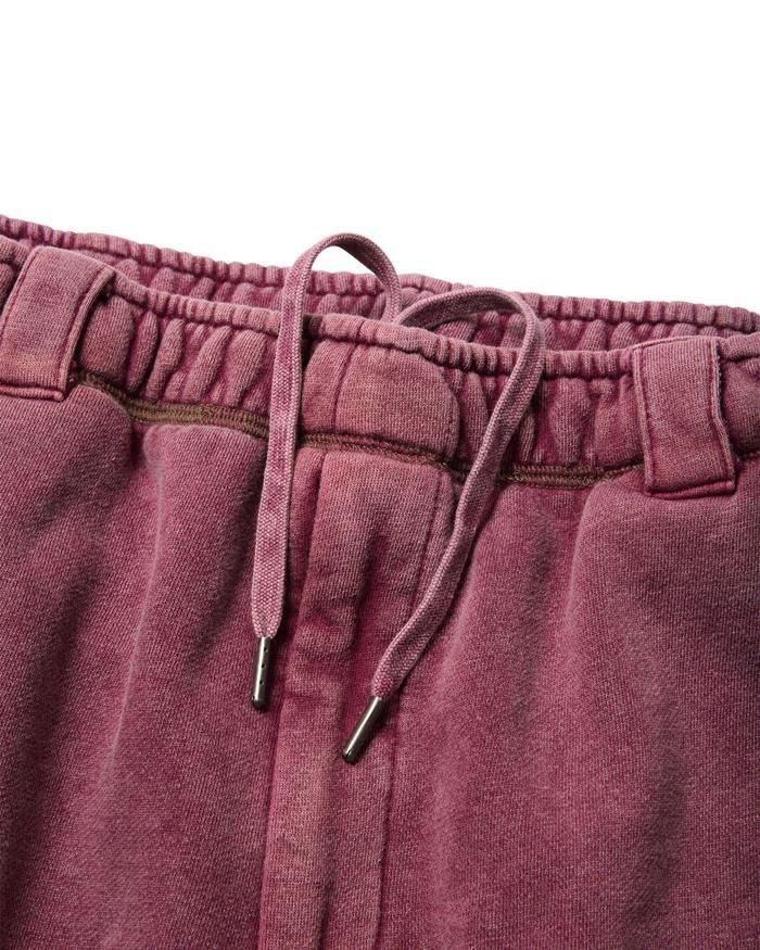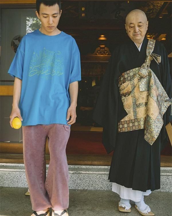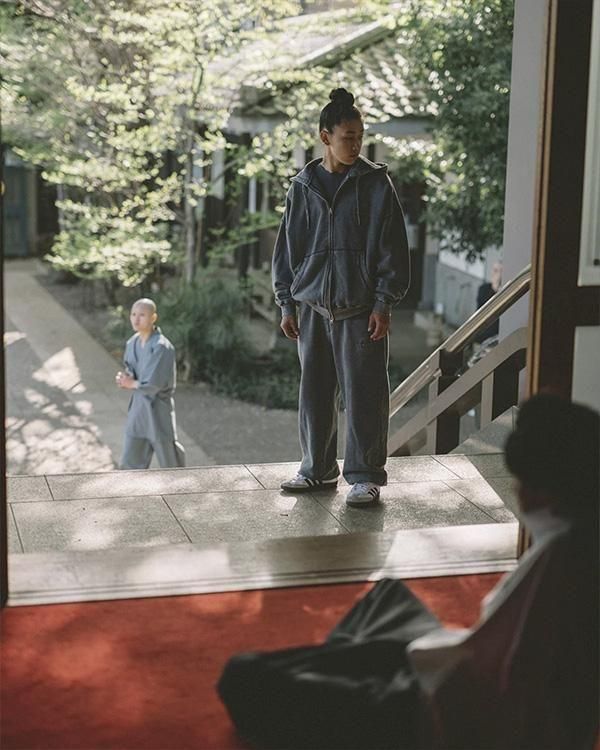 バックポケット上にはシルバーの“ゑ”刺繍入り。裾は平ゴム入りのシャーリング仕様。ステッチの糸色とボディーの色のコントラストもポイントです。同じ素材のフーディーとのセットアップスタイルがオススメ。