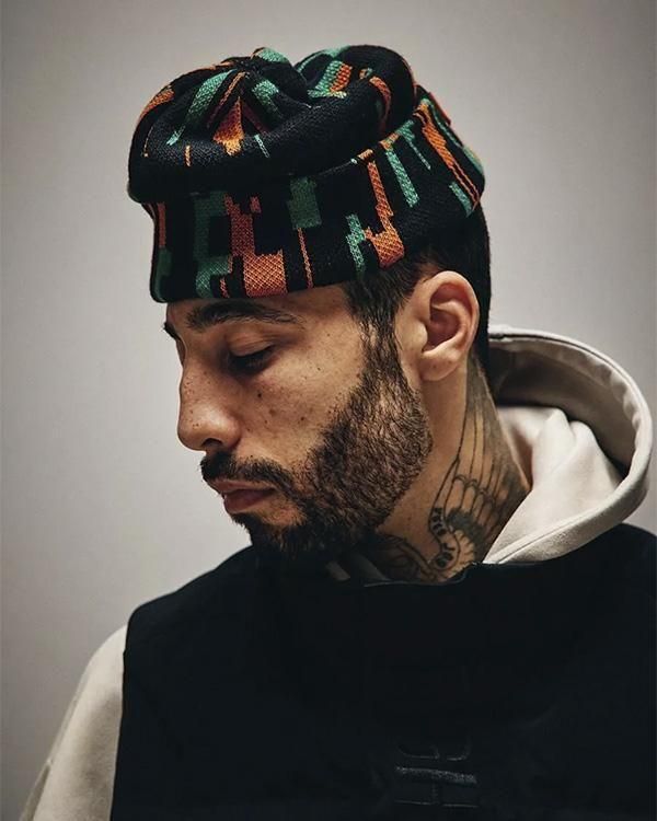 オリジナルグラフィックをジャガードで編み立てたワッチキャップ。
