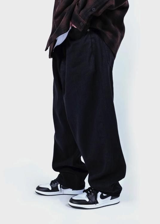 そこにしっかりとテーパードを効かせることで、ルーズすぎず洗練された印象に仕上げました。